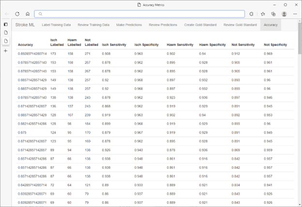 The medical experts found that they were able to intuitively use recall and specificity metrics to guide selection of additional cases to label, resulting in both maximal and rapid improvement in model performance. Further performance gains were realized by selectively targeting labelling based on sorting by confidence scores. In doing so, medical experts engaged in active learning by not only confirming predictions with low scores but also correcting wrong predictions with high scores.