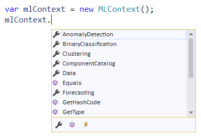 Once you have an instance of an MLContext, you can load and transform data, choose the best algorithm for your machine learning task, train your model. Once trained, you can test your model for accuracy, save it to disk, and use it to make predictions. An MLContext can be initialized from a model that was previously saved to disk.